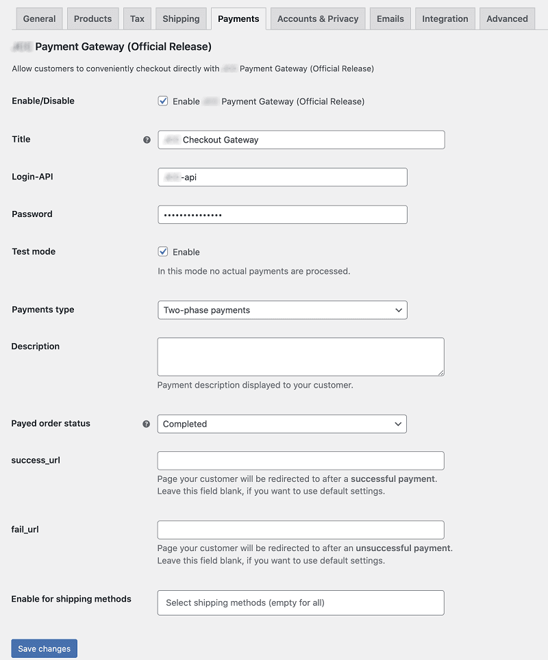 | Two-phase payments | Defines the payments type: one-phase payments or two-phase payments