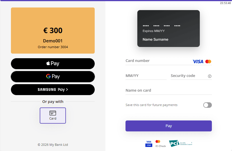 Select Save this card for future payments if you want to store the credential: in this case, you will not have to enter the card data next time.