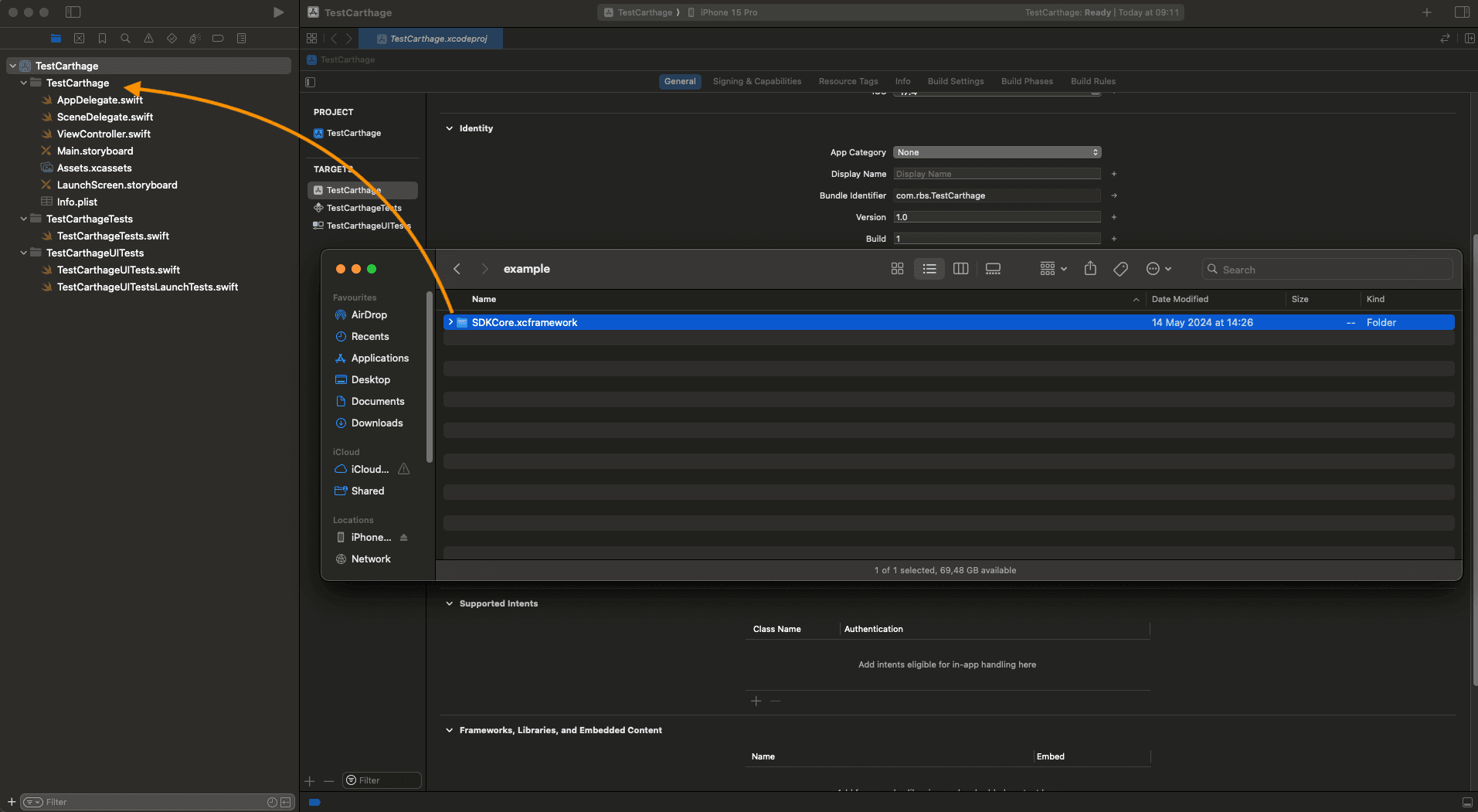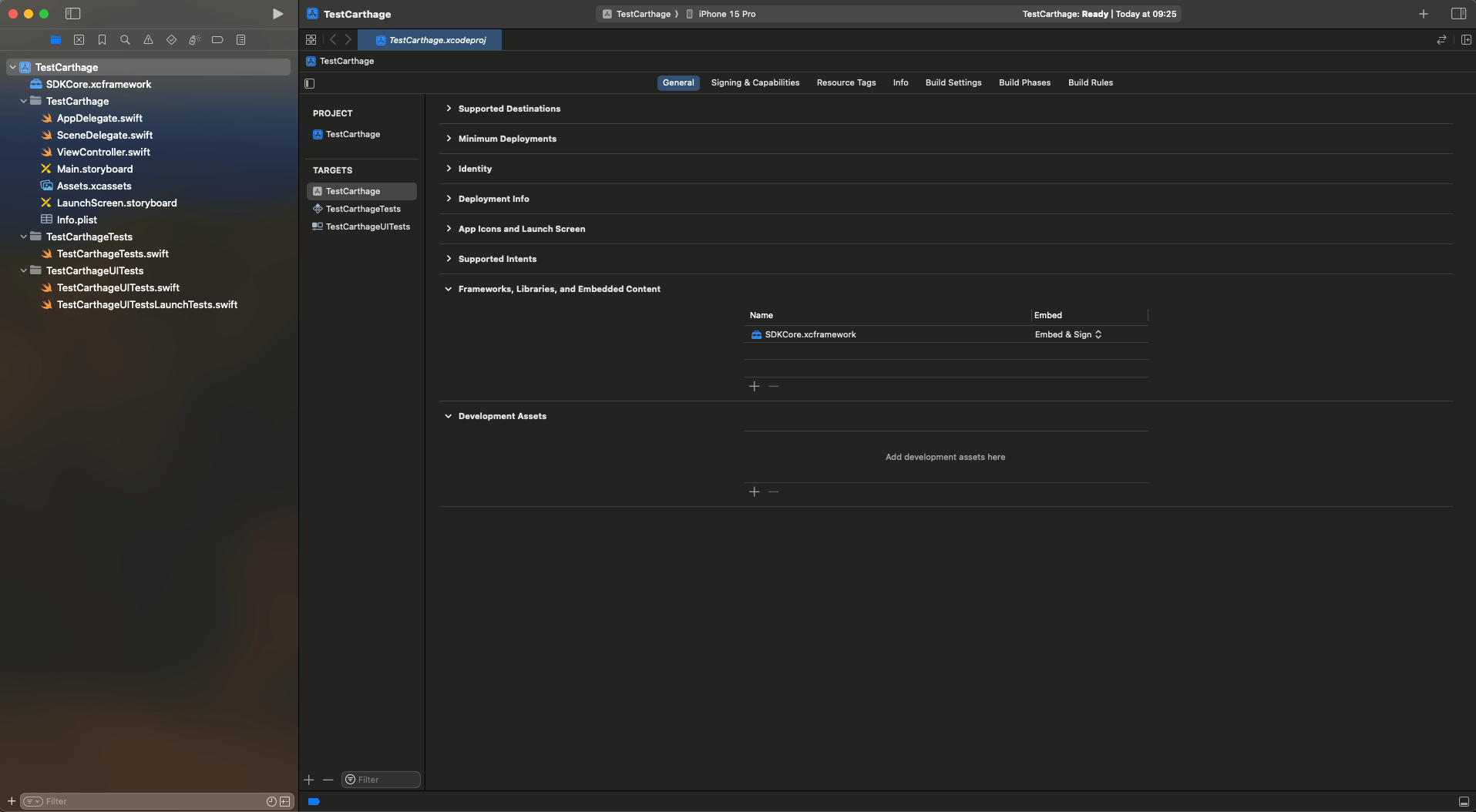 SDKCore.xcframeworkв колонке Embed выбрано Embed & Sign.-
